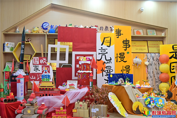 長(zhǎng)廊變身藝術(shù)展廳,諸如紙盒、紙筒、PVC管這些看似無(wú)用的廢品,在家長(zhǎng)和孩子們的巧思創(chuàng)意下瞬間大變身!瞧,神州火箭直指蒼穹;東風(fēng)5C使命必達(dá);玉兔獻(xiàn)瑞栩栩如生;精美月餅香氣四溢;紅色故事傳遞力量;彩筆描繪萬(wàn)里河山……這不僅是一次溫馨的親子合作,更是一堂生動(dòng)的愛(ài)國(guó)啟蒙課。那份深沉的家國(guó)情懷,也在這大手與小手的共同創(chuàng)造中,深深扎根,熠熠生輝。
