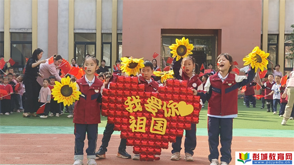活動尾聲,全場師生揮舞著小國旗與向日葵花束,共同唱響《我愛我的祖國》。紅色的國旗、金色的花束在陽光下交相輝映,孩子們的笑臉與“我愛你祖國”的氣球造型構成了最美的畫面。那歌聲里,有童真的純粹,更有對祖國最熾熱的情感。這一刻,愛國不再是抽象的詞匯,而是化作了旋律、笑容與行動,深深烙印在孩子們的記憶里。