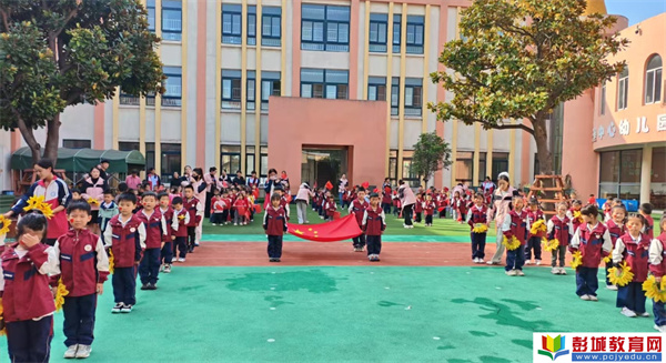 看!小小護旗手們身著整齊的園服,昂首挺胸地護送著五星紅旗走向旗桿。他們稚嫩的臉龐上貼著鮮艷的國旗貼紙,眼神里滿是對國旗的崇敬。
