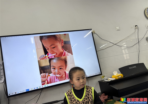 在孩子們了解蛀牙成因后,我們將重點(diǎn)轉(zhuǎn)向“牙齒保護(hù)”學(xué)習(xí)。首先,播放正確刷牙方法的科普視頻,視頻里用動(dòng)畫形式展示刷牙步驟和要點(diǎn)——要上下刷、左右刷,每個(gè)牙齒面都要刷到,刷牙時(shí)間不能少于三分鐘。孩子們認(rèn)真觀看,還跟著視頻動(dòng)作模仿練習(xí)。