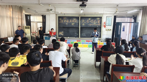 在全場的歡呼聲中,楊彬校長對本次比賽作了總結(jié)講話。他說,中秋與國慶,一個是流淌著千年民俗的傳統(tǒng)佳節(jié),一個是承載著時代精神的國家慶典,二者相遇,既是時光的饋贈,更是文化的交融。我們仰望星空,感受“天涯共此時”的浪漫;我們品味月餅的香甜,體味“團圓美滿”的寓意;我們傳唱愛國歌曲,感受華夏兒女的榮光,彰顯著新時代共和國的生機與活力,也延續(xù)著中華兒女自強不息、砥礪奮進的精神血脈。作為校園里的師生,我們既是傳統(tǒng)文化的繼承者,也是時代精神的傳播者。希望老師們能將節(jié)日文化融入課堂,帶領(lǐng)同學(xué)們領(lǐng)略優(yōu)秀傳統(tǒng)文化的魅力;希望同學(xué)們能主動探尋節(jié)日背后的故事,用歌詠、詩詞、書畫等方式,表達對黨和祖國的熱愛,讓中華優(yōu)秀傳統(tǒng)文化在校園里薪火相傳。