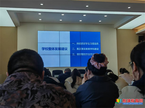 教研反饋賦能學(xué)校發(fā)展,大屏幕上呈現(xiàn)了“學(xué)校整體發(fā)展建議”,包含以下三點: