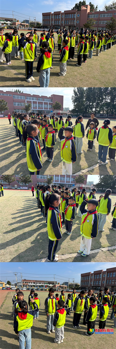 儀式接近尾聲,少先隊輔導員夏楠主任用溫柔又堅定的語氣給予新隊員期望。讓孩子們知道紅領巾是五星紅旗的一角,是革命先輩用鮮血染紅的。今天戴上它,不僅多了一個“少先隊員”的身份,更多了一份責任。希望新隊員以后既能當課堂上認真思考的“小問號”,也能做校園里幫助同學的“小太陽”,把“強國復興”的夢想裝在心里,長大后用本領為祖國添光彩!最后,少先隊輔導員夏楠主任帶領全體隊員呼號:“準備著,為共產主義事業(yè)而奮斗!”“時刻準備著!”響亮的呼號聲里,滿是少年們對未來的承諾。伴隨著《退旗歌》,隊旗緩緩退場,主持人莊重宣布:“張集鎮(zhèn)魏集實驗小學‘強國復興有我,爭當新時代好少年’二年級第二批少先隊入隊儀式,到此結束!”全體人員再次敬禮,2025年這場充滿意義的入隊儀式,在莊重而溫暖的氛圍中落下帷幕。