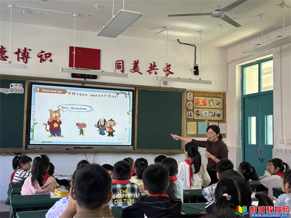 張楠老師則以介紹身邊的朋友為線索,由“Friend”話題導(dǎo)入,介紹第一課時(shí)的動(dòng)物朋友,復(fù)現(xiàn)句型“This is....”。以舊知引出新識(shí)。張老師緊抓教學(xué)重難點(diǎn),通過(guò)扎實(shí)有效的教學(xué)活動(dòng),展現(xiàn)出對(duì)教材的深度解讀。三年級(jí)(10)班的孩子,在老師的鼓勵(lì)下,積極舉手發(fā)言,參與到各個(gè)學(xué)習(xí)環(huán)節(jié)中,通過(guò)英語(yǔ)清晰表達(dá),展現(xiàn)出扎實(shí)的語(yǔ)言運(yùn)用能力。