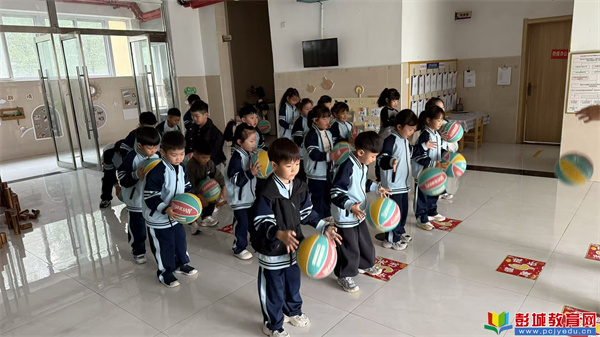 走進(jìn)活動(dòng)場(chǎng)地,五彩的籃球在孩子們手中仿佛被賦予了生命。小班的萌娃們?cè)诶蠋煹哪托囊龑?dǎo)下,小心翼翼地抱著籃球,學(xué)習(xí)基本的持球動(dòng)作,圓滾滾的小臉上滿是專注;中班的孩子們則開始嘗試拍球、運(yùn)球,他們邁著略顯稚嫩的步伐,追逐著彈跳的籃球,笑聲在場(chǎng)地中不斷回蕩;大班的孩子們已經(jīng)能熟練地進(jìn)行傳球練習(xí),兩兩一組,眼神專注、動(dòng)作默契,展現(xiàn)出了別樣的運(yùn)動(dòng)風(fēng)采。