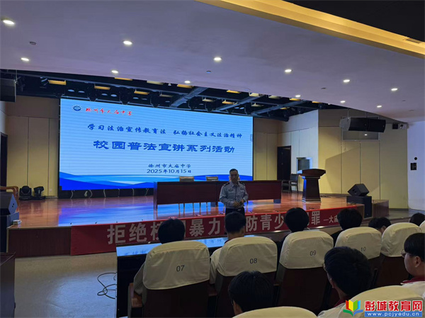 本次法治教育講座以案釋法,以法論事,深入淺出的給同學(xué)們上了一堂生動(dòng)的法治教育課。徐州市大廟中學(xué)將持續(xù)開(kāi)展“校園普法宣講系列活動(dòng)”,深入開(kāi)展法治教育,全力打造平安校園。