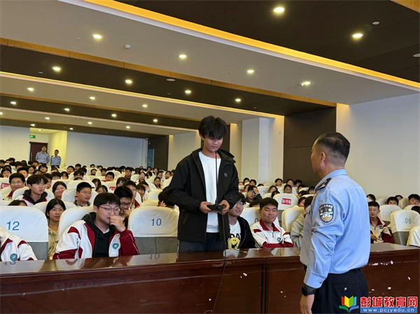 然后是劉海峰大隊(duì)長(zhǎng)和同學(xué)們互動(dòng)交流,劉大隊(duì)以發(fā)生在學(xué)生身邊的具體案例提出問(wèn)題,請(qǐng)同學(xué)們回答,接著講評(píng),給同學(xué)們帶來(lái)很多啟發(fā)和思考,取得很好的效果。