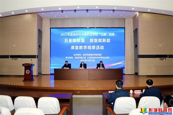 10月16日,2025年徐州市中等職業(yè)學(xué)校“三教”改革課堂教學(xué)觀摩活動在徐州開放大學(xué)順利舉行。來自全市各職業(yè)學(xué)校的相關(guān)領(lǐng)導(dǎo)及骨干教師近200人齊聚一堂,共研課堂教學(xué)創(chuàng)新,共促教師專業(yè)成長。徐州市教科院黨支部書記、副院長丁蕾,徐州開放大學(xué)黨委書記、校長石月榮出致開幕式,開幕式由副校長楊平主持。